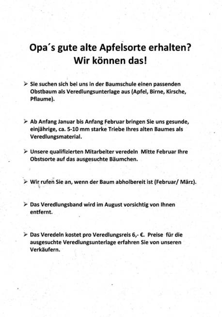Wir vervollständigen unser vielfältiges Sortiment mit Obstgehölzen, Rosen und Stauden aus anderen sächsischen Baumschulen .